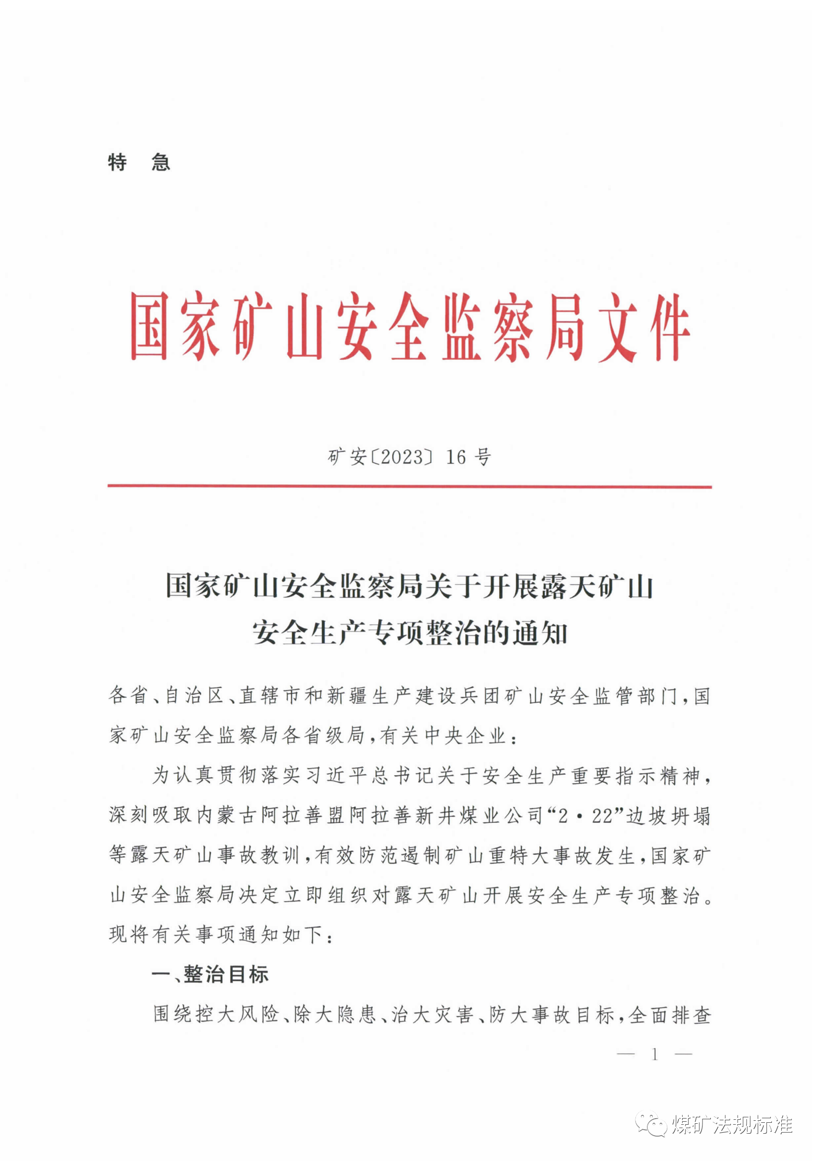 國家礦山安全監(jiān)察局關于開展露天礦山安全生產(chǎn)專項整治的通知