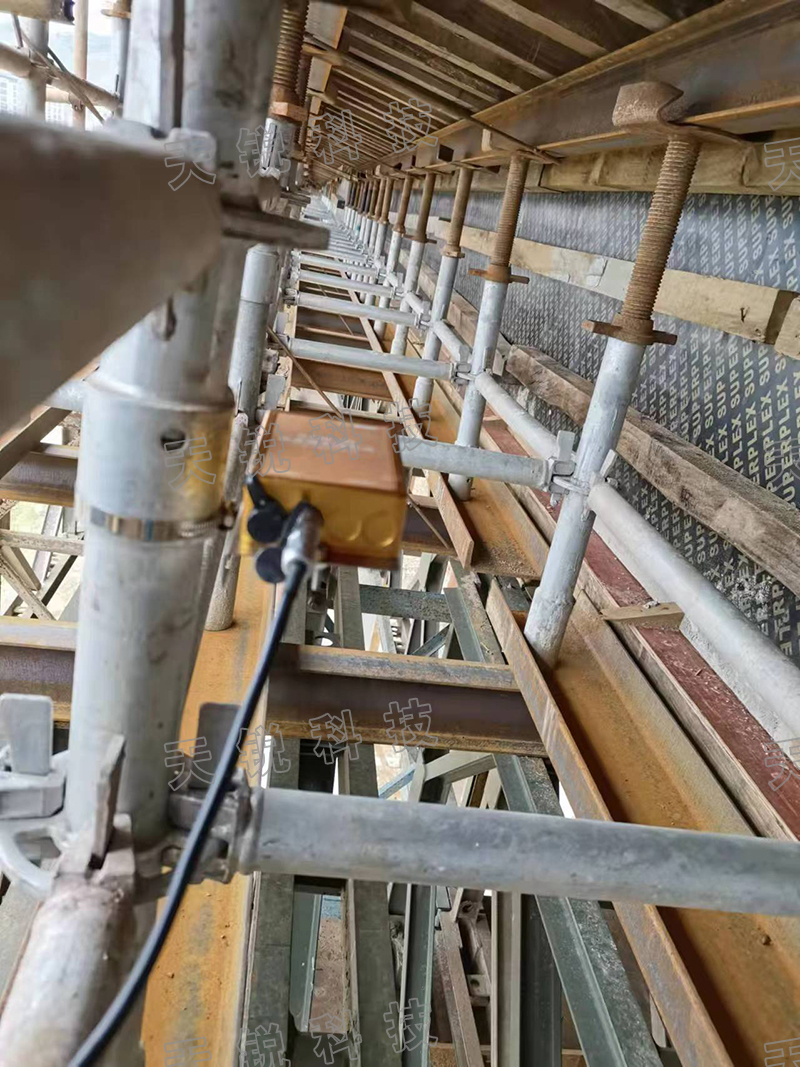 高支模和腳手架外觀差不多,但是高支模對(duì)荷載和結(jié)構(gòu)的要求很高,它主要是用來作灌澆水泥時(shí)支撐模板用的,澆筑混凝土?xí)r立桿和模板會(huì)受到比較大的混凝土荷載壓力,模板收到荷載力影響會(huì)下沉,采用拉線位移計(jì)來完成模板沉降的測(cè)量。拉線位移計(jì)具有安裝方便、成本可控、走線簡(jiǎn)單、精度高的優(yōu)點(diǎn)。